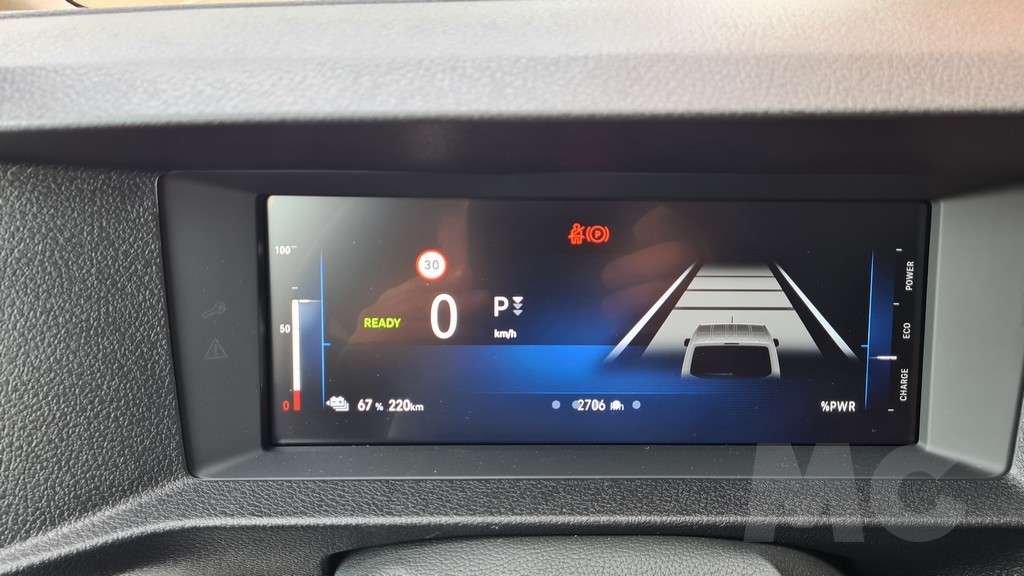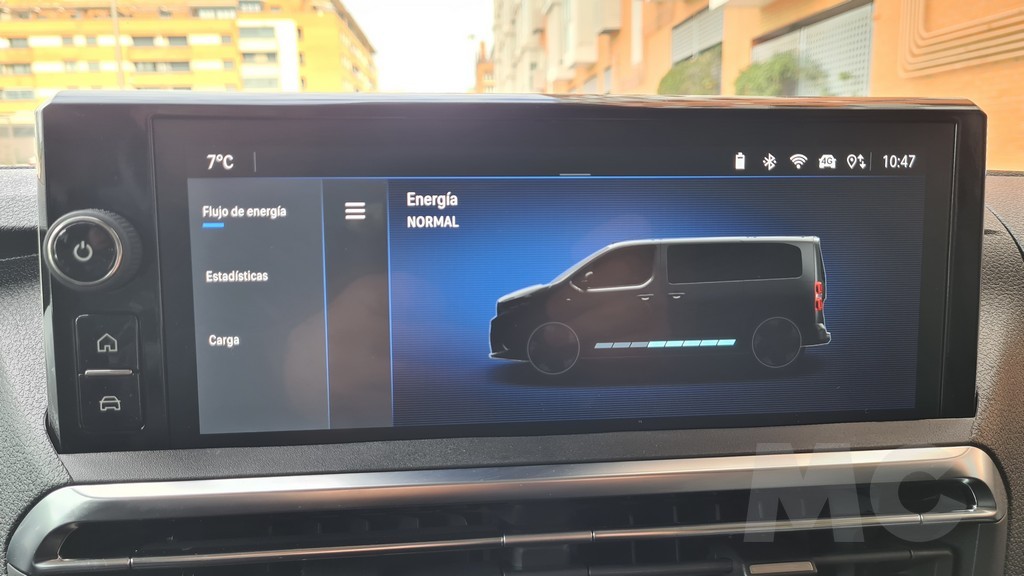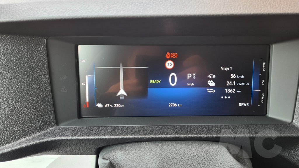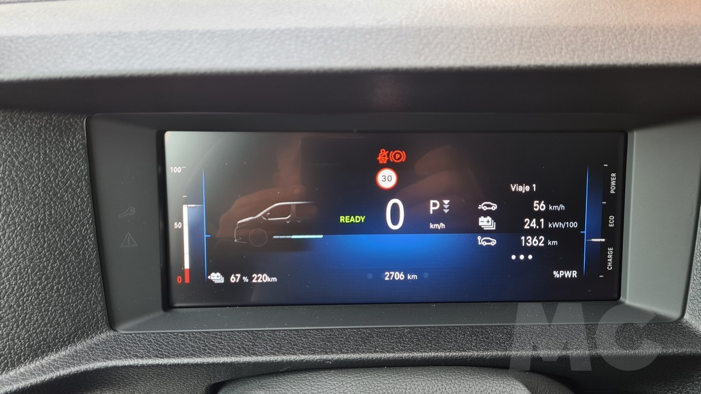 Esta limitación no es un capricho, sino una decisión de ingeniería fundamental para preservar la autonomía de la batería al enfrentarse a la considerable resistencia aerodinámica de su carrocería a altas velocidades. La batería tiene capacidad de (68 kWh útiles), lo que lleva la autonomía homologada hasta los 350 km. El paquete de baterías está ingeniosamente ubicado bajo el piso del vehículo, entre los dos ejes, lo que no solo no compromete el espacio interior ni la capacidad de carga, sino que además contribuye a bajar el centro de gravedad, mejorando la estabilidad. Algo muy necesario en una furgoneta de las características de la Zafira cuando afrontamos trayectos con curvas.