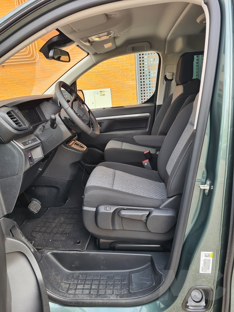 El habitáculo del Opel Zafira-e es un espacio maximizado y que ofrece dos puntos de vista. Por un lado el del lujo que no se mide en inserciones de madera noble o cromados, sino en metros cúbicos de espacio, versatilidad y un silencio de marcha excepcional gracias a la propulsión eléctrica y la buena insonorización. Por otro, no puede ocultar sus raíces como vehículo de trabajo, evidentes en la elección de materiales y en la ergonomía de ciertos elementos, más pensados para la supervivencia que para el disfrute. El puesto de conducción es elevado lo que proporciona una visibilidad periférica excelente, pero con una postura más erguida y menos integrada que en un monovolumen tradicional. El salpicadero está dominado por plásticos duros pero robustos, diseñados para soportar el trato exigente de un uso profesional, un claro legado del Vivaro. Solo en los acabados más altos, detalles como la tapicería de cuero en los asientos logran aportar un toque de distinción.