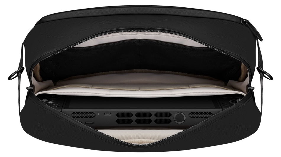 La consola portátil Legion Go 2 solo se ha visto en la opción de color que ves en las imágenes, aunque no sabemos si se venderá en otros acabados. Evan Blass también ha compartido una imagen de una bolsa de transporte para el dispositivo. La bolsa parece estar hecha de lona y se muestra acolchada para brindar protección al transportarla.