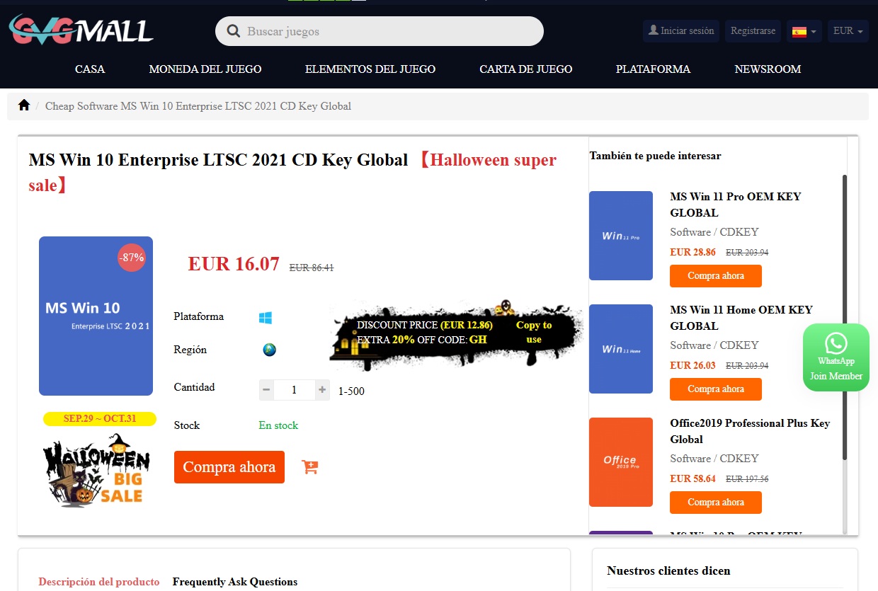 GvGmall España está celebrando Halloween, y durante todo el mes de octubre ofrece una serie de ofertas en licencias de software original OEM de Microsoft. Entre los productos en oferta se encuentran Windows 10 Enterprise LTSC, Windows 11 Enterprise LTSC y también otras versiones de estos sistemas operativos, además de Microsoft Office y packs de licencias a precios muy interesantes.
