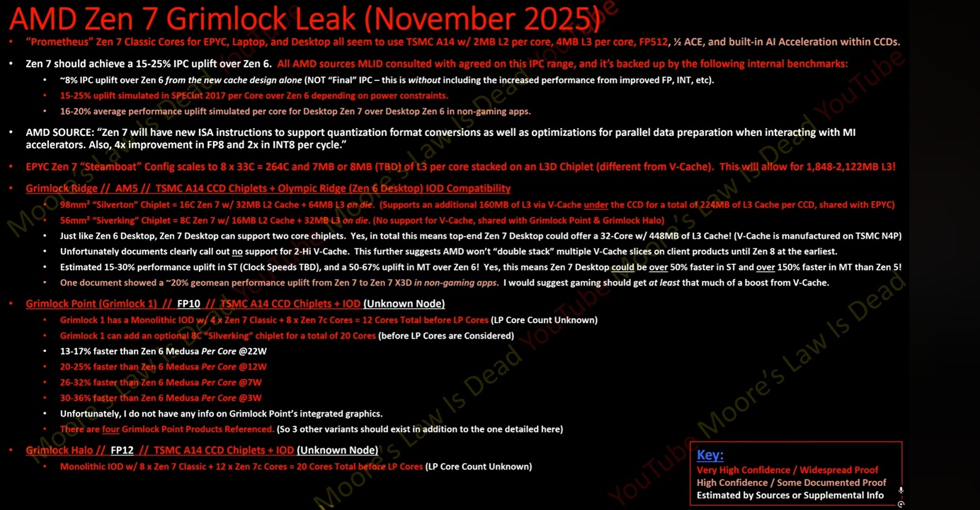 La fuente también recoge información sobre Grimlock Point, que en teoría es el nombre en clave con el que se conocen las APUs de próxima generación que estarán basadas en la arquitectura Zen 7 de AMD. En teoría, AMD utilizará dos diseños, uno monolítico combinando hasta 4 núcleos Zen 7 y 8 Zen 7c y otro modular (basado en chiplets) con hasta 20 núcleos y 40 hilos, basado en Silverking.