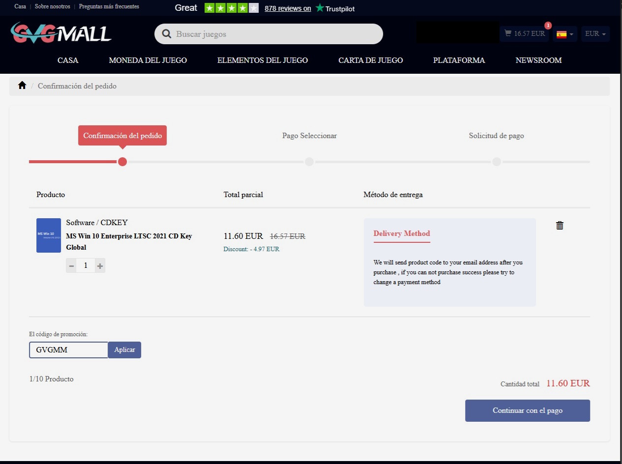 - Windows 10 Enterprise LTSC 2021 clave con validez de por vida por 11,6 euros, utilizando el cupón GVGMM antes de completar el proceso de compra.