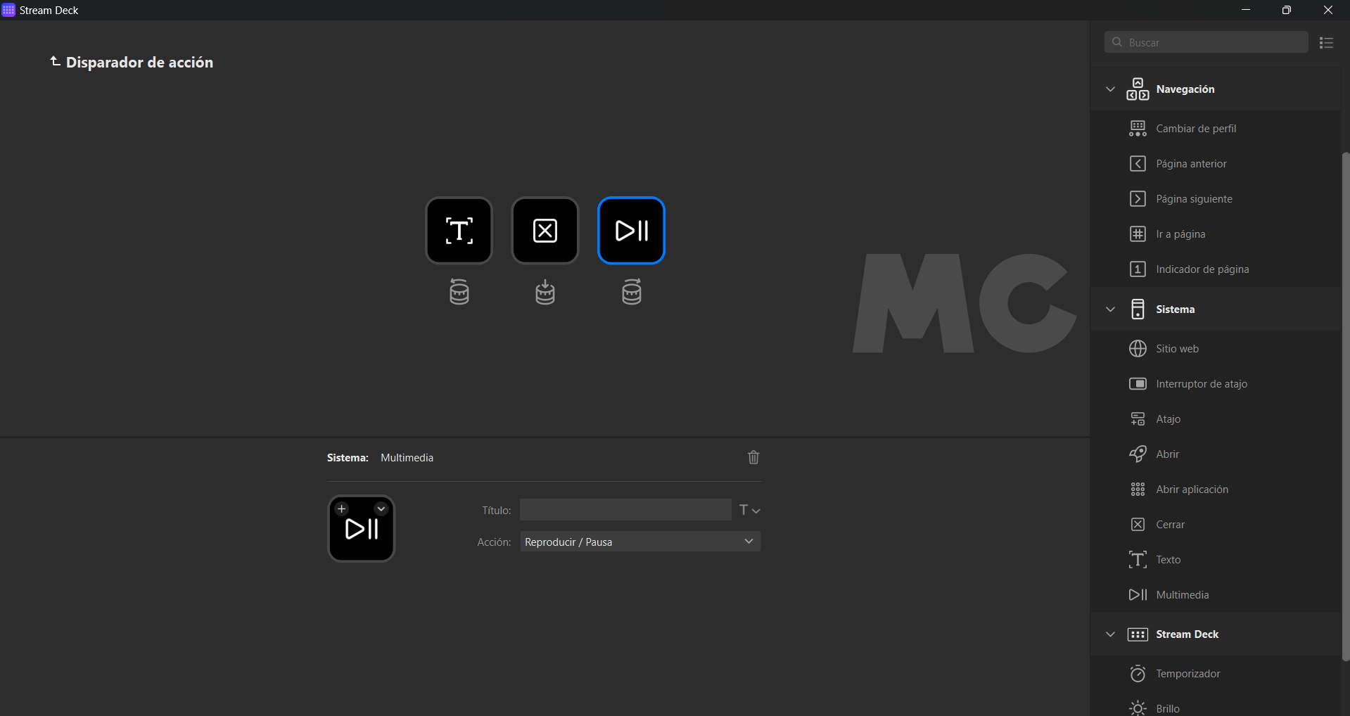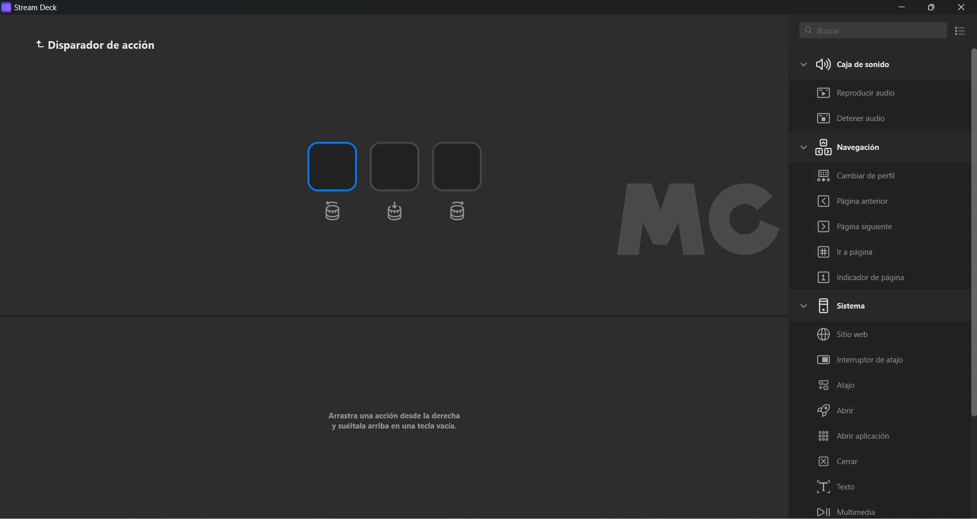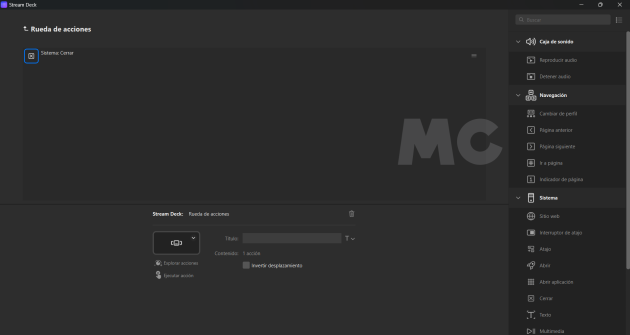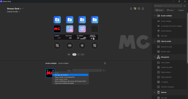 Esto es solo una pequeña muestra de lo que podemos hacer con Elgato Stream Deck +. Para vincular una acción a un botón o al dial solo tenemos que seleccionarla de la parte derecha de la aplicación y arrastrarla al botón o dial correspondiente. A partir de ahí, dependiendo de lo que hayamos escogido, podremos perfilar mejor la función e incluso añadir un icono personalizado a partir de una imagen.