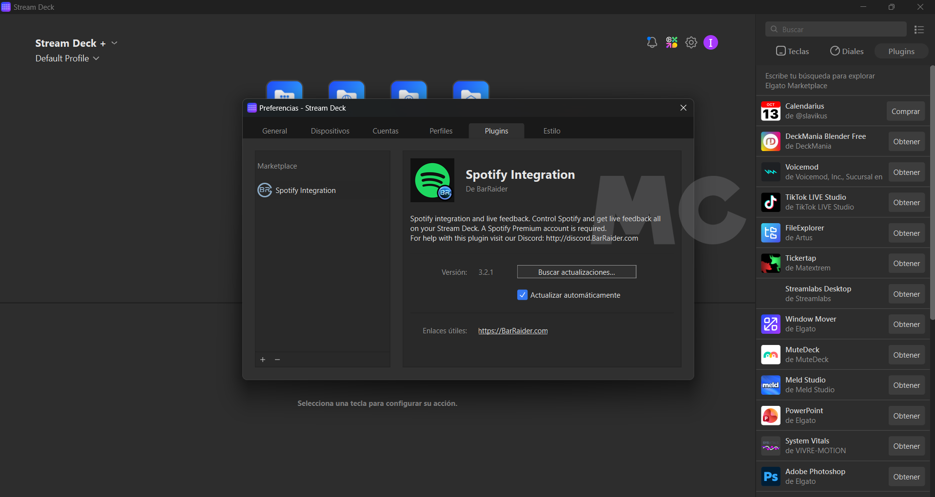 Para probar Elgato Stream Deck + en este análisis he creado perfiles personalizados con diferentes funciones y acciones, y también he descargado varios perfiles predefinidos que están disponibles de forma gratuita en la tienda de plugins de Elgato.