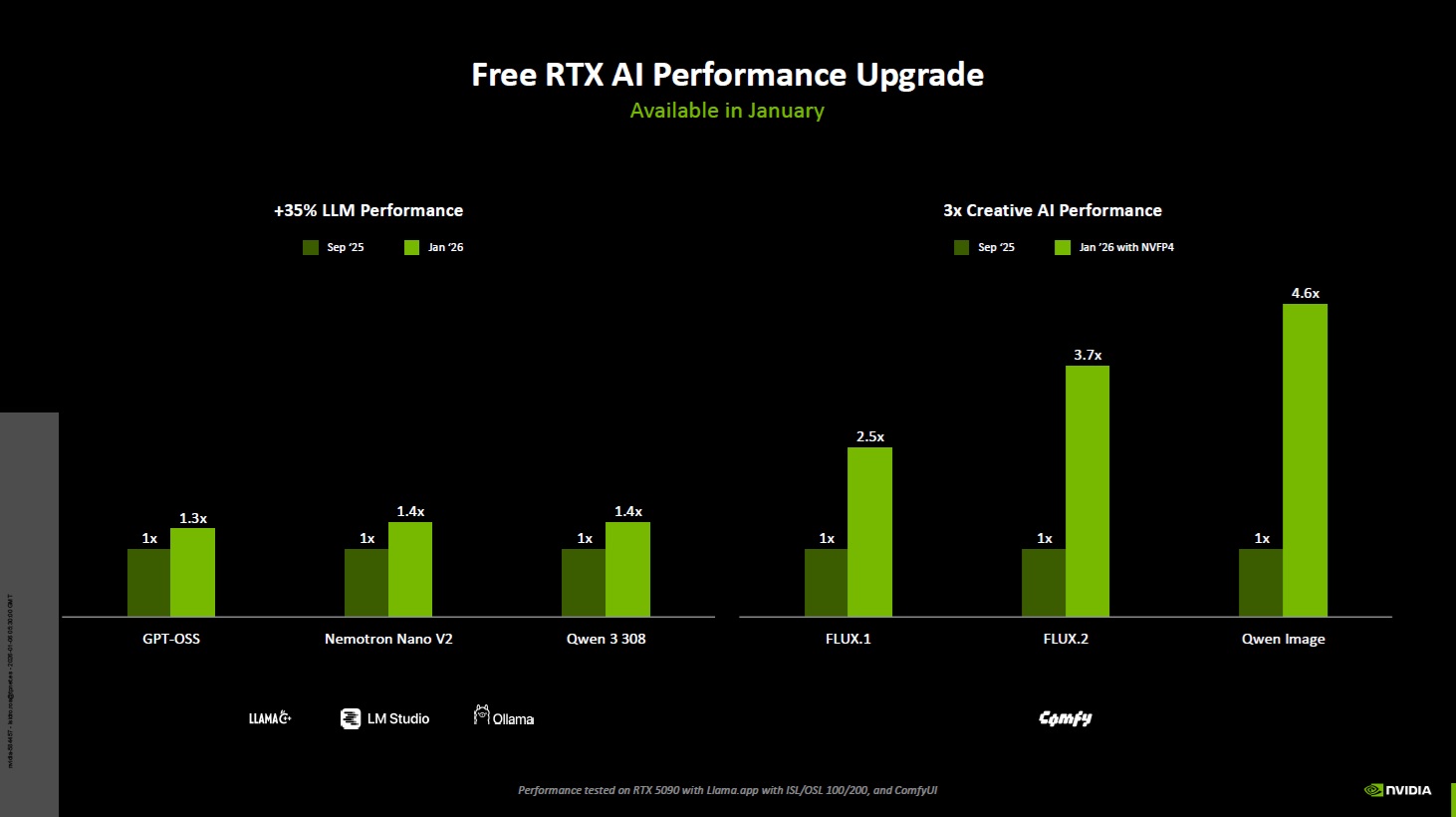 Siguiendo con la IA, NVIDIA ha confirmado una actualización muy importante que mejorará el rendimiento de los principales modelos de IA, y que además reducirá el consumo de memoria gráfica de diferentes modelos de IA con tarjetas gráficas GeForce RTX, gracias al uso de NVFP4.