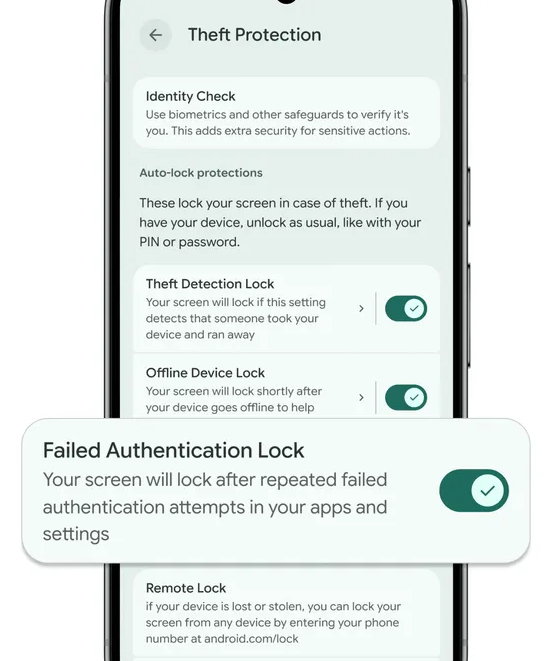 En cuanto a la recuperación, Google ha mejorado Remote Lock, una herramienta que permite bloquear un dispositivo perdido o robado desde un navegador web ingresando un número de teléfono verificado. La compañía agregó un desafío de seguridad opcional para garantizar que solo el propietario legítimo pueda iniciar el bloqueo remoto, una importante protección contra el uso indebido.