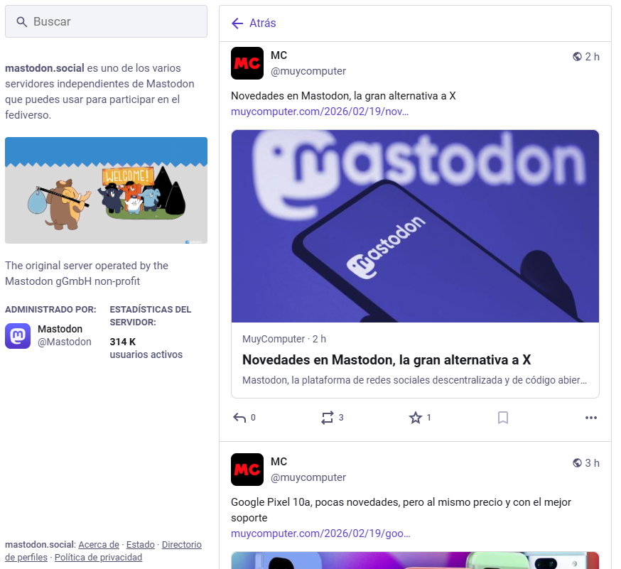 Ya sabemos que es difícil entrar en redes más pequeñas donde seguramente todavía no estén tus contactos, pero te recomendamos probarla. Y, recuerda, MuyComputer está en Mastodon desde hace tres años.