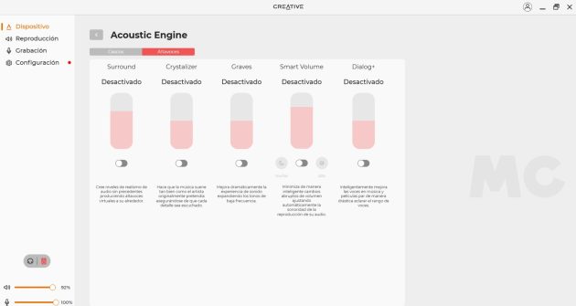 - Integración plena en la aplicación dedicada de Creative, tanto en PC como en dispositivos móviles.