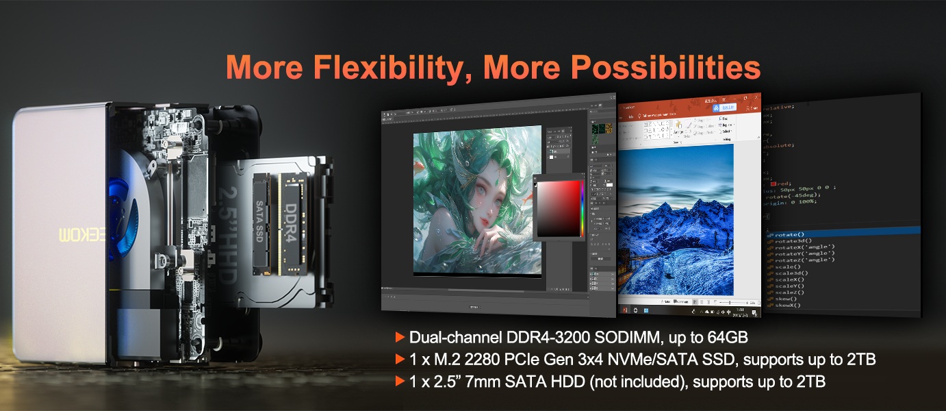 A nivel de hardware, el GEEKOM A5 se puede comprar en diferentes configuraciones, enfocadas a distintos perfiles de uso. Todas esas configuraciones tienen cosas importantes en común: