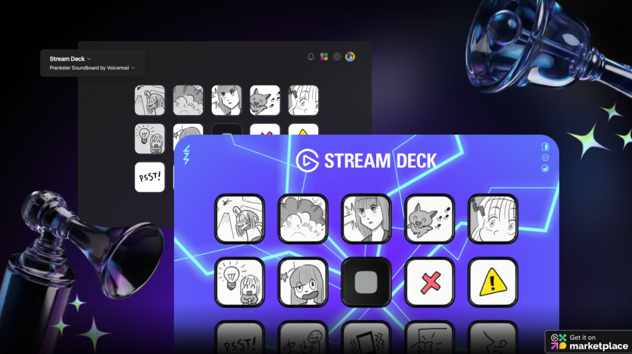 Los usuarios de Stream Deck ya pueden comprar paneles de sonido Voicemod completos directamente en Marketplace. Cada uno está repleto de memes y clips de sonido, con temas que van desde fantasía hasta juegos FPS. Se instalan directamente en Stream Deck como perfiles listos para usar, sin necesidad de configuración manual ni la aplicación Voicemod. Los paneles de sonido están optimizados para diseños de Stream Deck de 15 teclas, y próximamente se añadirán más temas y compatibilidad con otros dispositivos.