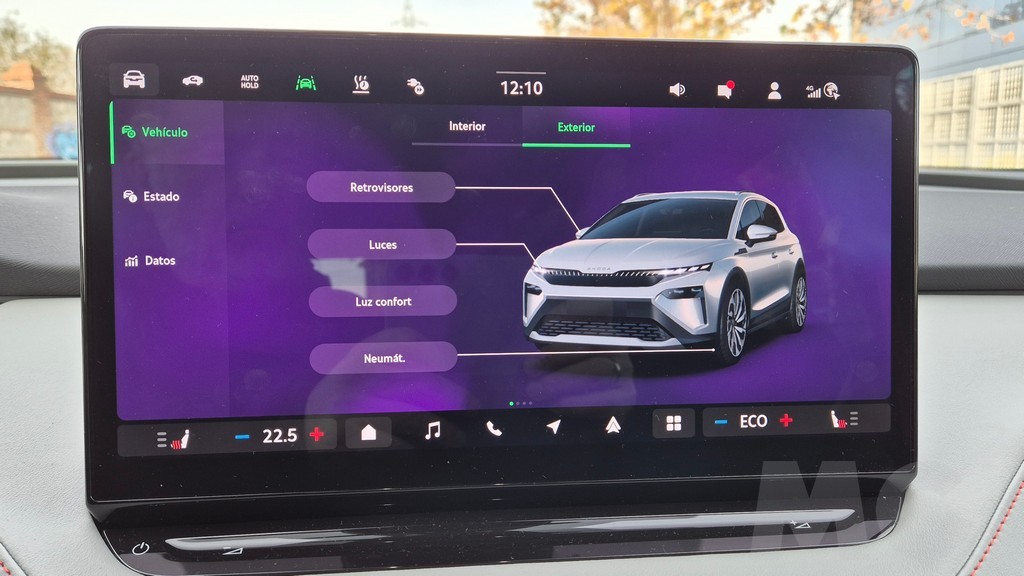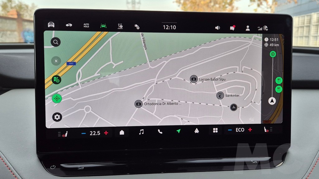 Desde el punto de vista del comportamiento en autopista, sin embargo, el Elroq es un coche excelente. La estabilidad a velocidades de crucero es sólida, la insonorización aísla eficazmente el ruido de viento y de rodadura, y el sistema Travel Assist convierte los trayectos largos en una experiencia relajada. El control de crucero adaptativo sigue con suavidad al vehículo precedente, y el asistente de carril mantiene el coche centrado en su carril sin intervenciones bruscas. El control de crucero predictivo ajusta la velocidad antes de las curvas o de los cambios de límite de velocidad con suficiente anticipación, una función que en otros competidores todavía genera incomodidad por sus intervenciones tardías o excesivamente abruptas.
