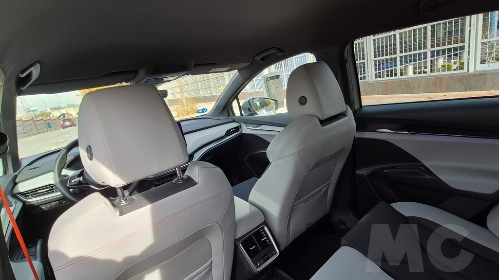 El espacio para las piernas es amplio gracias a la distancia entre ejes de 2.766 mm, aunque existe una limitación importante: el suelo trasero es relativamente elevado debido al paquete de baterías, lo que implica que los muslos de los pasajeros no quedan bien apoyados en el borde del asiento. Es la misma crítica que se ha hecho al Ford Explorer eléctrico y al Volkswagen ID.4, también basados en la MEB. Los pasajeros traseros no pueden ajustar la inclinación del respaldo ni desplazar la banqueta longitudinalmente, a diferencia de lo que sí permite el Kia EV3.