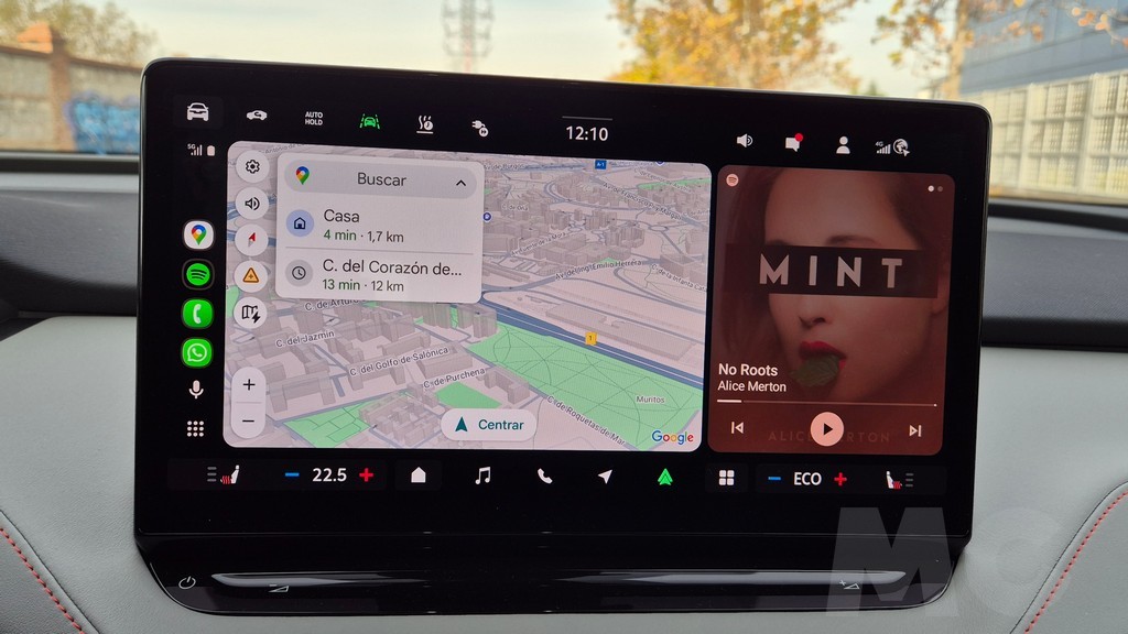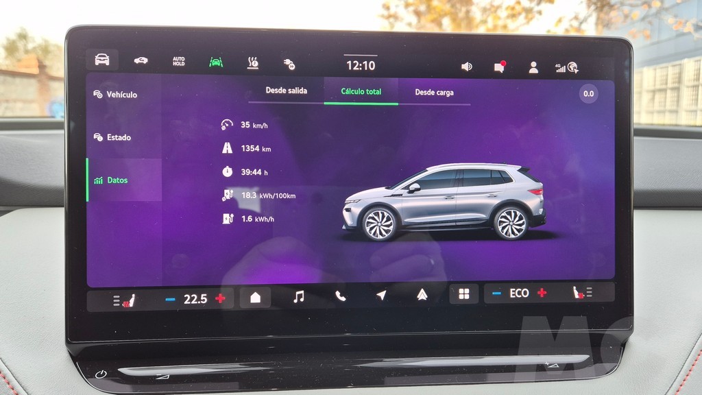 Desde el punto de vista del comportamiento en autopista, sin embargo, el Elroq es un coche excelente. La estabilidad a velocidades de crucero es sólida, la insonorización aísla eficazmente el ruido de viento y de rodadura, y el sistema Travel Assist convierte los trayectos largos en una experiencia relajada. El control de crucero adaptativo sigue con suavidad al vehículo precedente, y el asistente de carril mantiene el coche centrado en su carril sin intervenciones bruscas. El control de crucero predictivo ajusta la velocidad antes de las curvas o de los cambios de límite de velocidad con suficiente anticipación, una función que en otros competidores todavía genera incomodidad por sus intervenciones tardías o excesivamente abruptas.