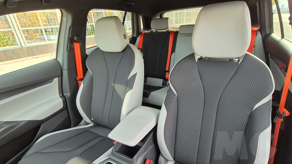 Si hay un apartado en el que el Elroq supera con holgura las expectativas que genera su precio de salida, ese es el del interior. El habitáculo del Elroq tiene un nivel de calidad de materiales, precisión de ensamblaje y coherencia visual que habitualmente se asocia a propuestas de segmento superior. Es un ejercicio al que nos tiene acostumbrados Skoda, pero en el caso del Elroq es todavía más llamativo. El salpicadero sigue las líneas del Enyaq, con una disposición minimalista que prioriza las superficies limpias y los elementos táctiles bien situados. La mayoría de las superficies que se tocan con las manos son de plástico de calidad o de materiales textiles, sin los acabados duros y brillantes que tanto deterioran la percepción de valor en otros competidores de precio similar.