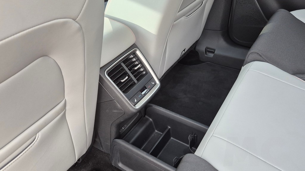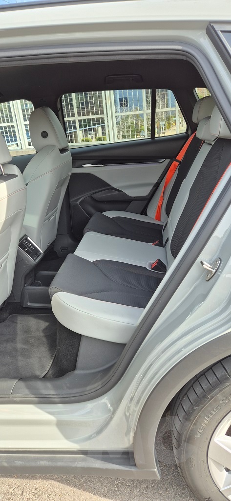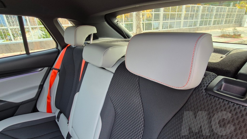 El espacio para las piernas es amplio gracias a la distancia entre ejes de 2.766 mm, aunque existe una limitación importante: el suelo trasero es relativamente elevado debido al paquete de baterías, lo que implica que los muslos de los pasajeros no quedan bien apoyados en el borde del asiento. Es la misma crítica que se ha hecho al Ford Explorer eléctrico y al Volkswagen ID.4, también basados en la MEB. Los pasajeros traseros no pueden ajustar la inclinación del respaldo ni desplazar la banqueta longitudinalmente, a diferencia de lo que sí permite el Kia EV3.