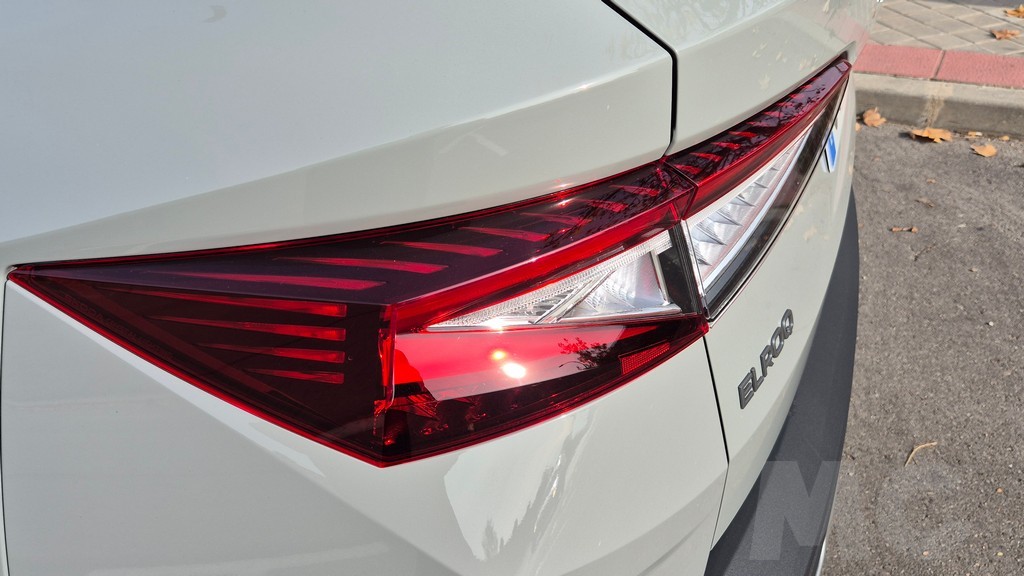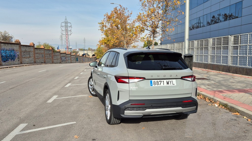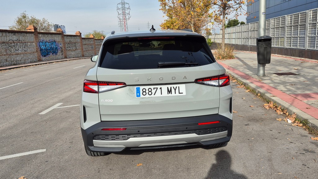 La parte trasera del Elroq es, probablemente, la que menos originalidad aporta al conjunto: los pilotos posteriores de corte minimalista con tecnología LED en todas las versiones recuerdan mucho a los del Enyaq, y la sensación general es de un modelo correctamente ejecutado pero sin grandes sorpresas visuales. El portón trasero tiene una apertura amplia que facilita enormemente el acceso al maletero, y en la versión superior con apertura eléctrica la experiencia mejora notablemente. La inscripción «Skoda» también aparece centrada en la zaga, reforzando la identidad de marca en ausencia del logotipo.