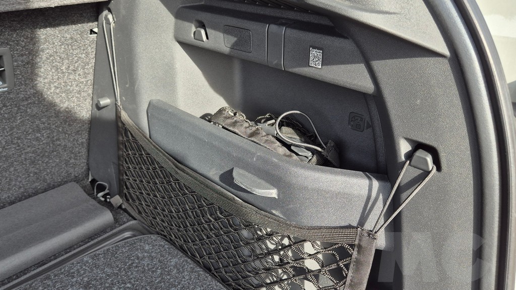 El maletero del Elroq declara 470 litros con los cinco asientos ocupados, cifra que sube a 1.580 litros al abatir los respaldos traseros. Son datos correctos para el segmento, aunque no excepcionales: el Renault Scenic E-Tech y el Ford Explorer ofrecen más volumen. Lo que sí destaca es la solución Simply Clever que Skoda ha ideado para los cables de carga: existe un doble fondo en el maletero con un compartimento específico para guardar los cables de carga, evitando que estos ocupen espacio útil o ensucien el equipaje. Además, la bandeja cubremaletero incorpora en su cara interior una red rígida donde también caben los cables. Es una solución aparentemente sencilla pero de una practicidad enorme que ningún competidor directo ofrece de serie.