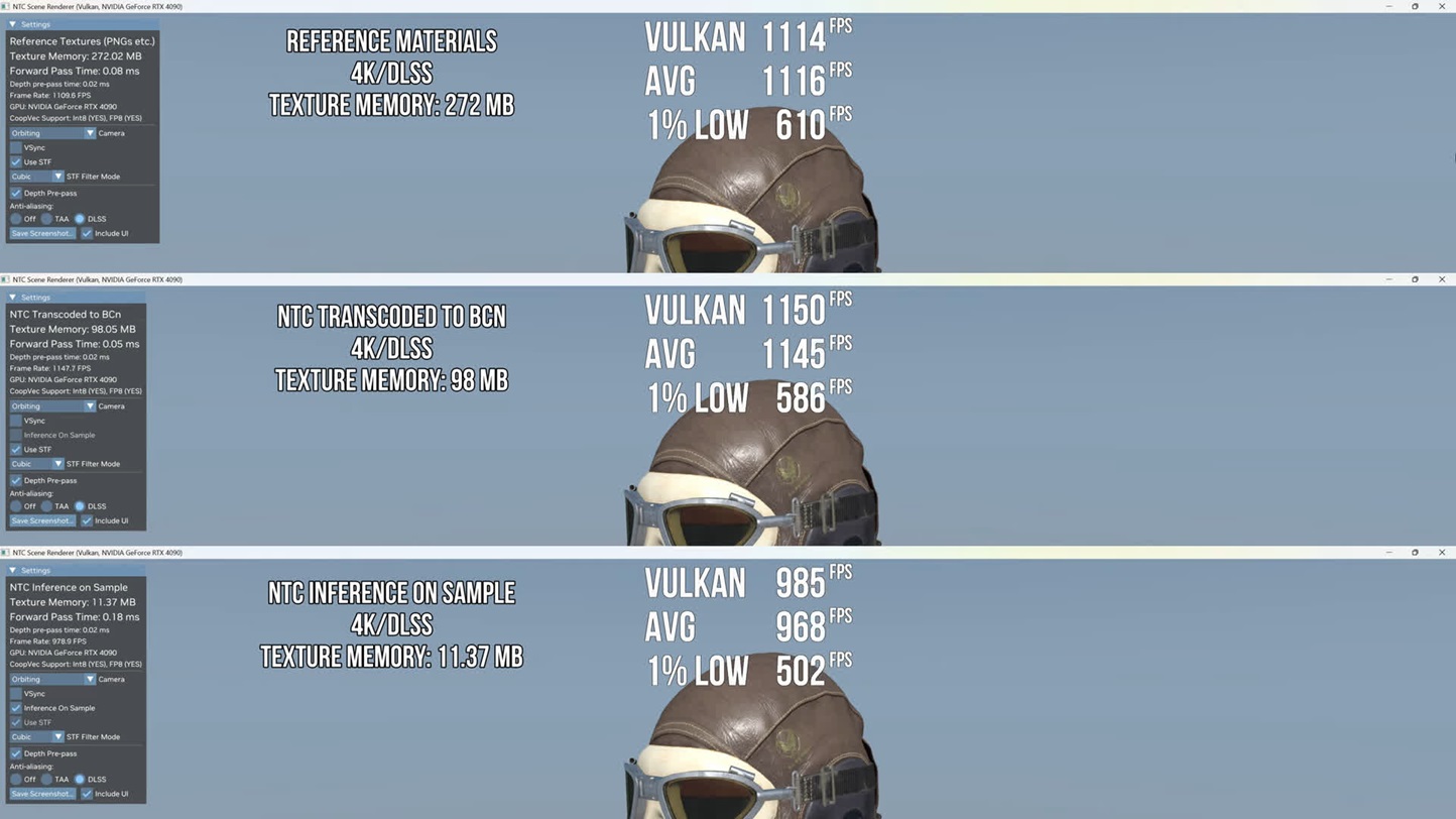 Con la compresión neural de texturas es posible comprimir bloques de texturas 4K que, dependiendo de la carga de trabajo y de las necesidades del juego, se van descomprimiendo en tiempo real a través de una red neural entrenada específicamente para ello.