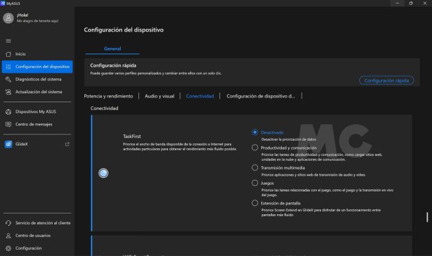 GlideX es una aplicación opcional que podremos instalar a través de MyASUS. Con ella podremos compartir y controlar diferentes pantallas entre dispositivos y plataformas diferentes, lo que nos permitirá crear nuevos espacios de trabajo y controlarlos de una manera mucho más sencilla. También resulta muy útil.