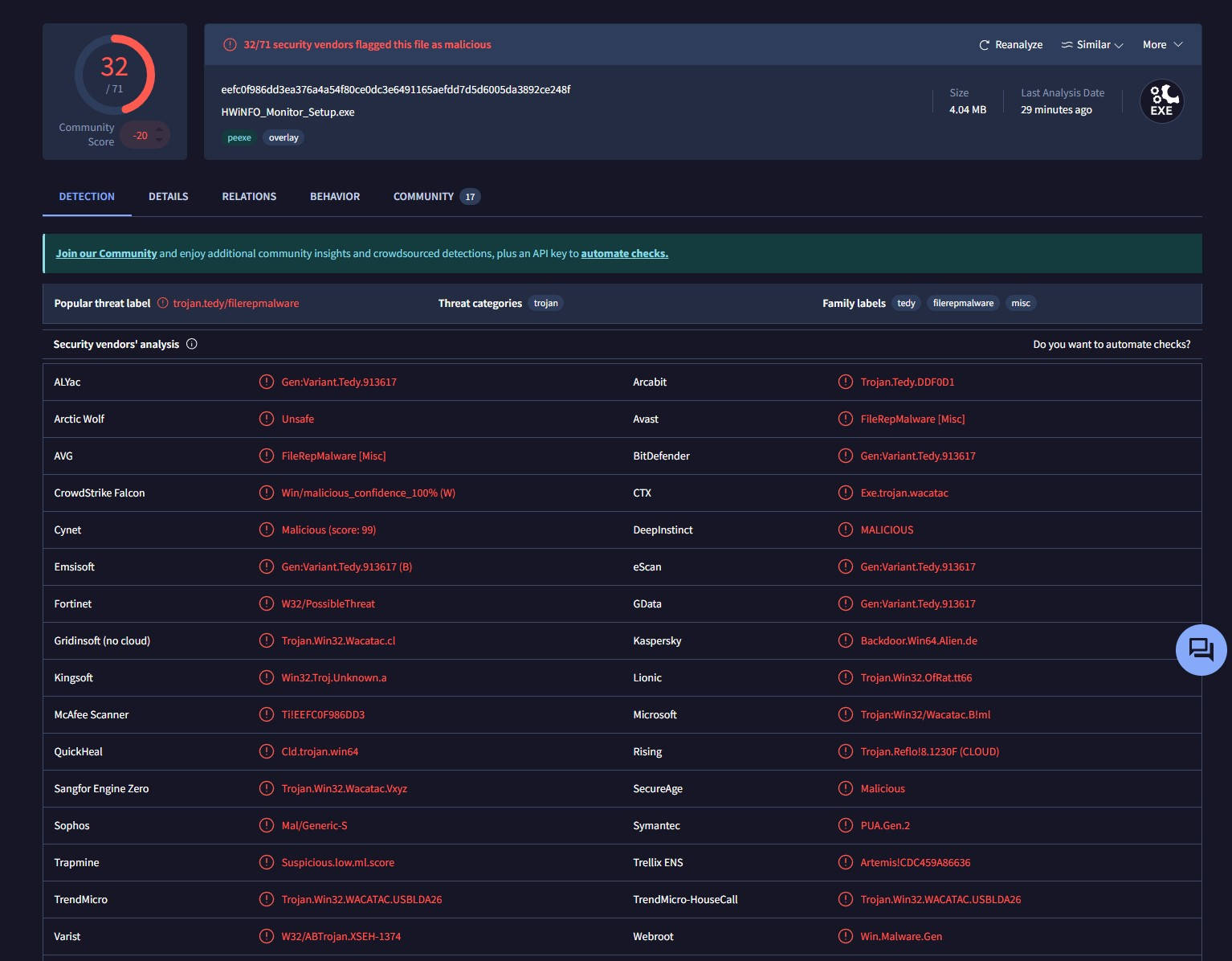 Las primeras alertas surgieron cuando usuarios que intentaban actualizar HWMonitor desde la propia web oficial de CPUID comenzaron a notar anomalías en el proceso de descarga. En lugar del archivo habitual con el nombre correspondiente a la nueva versión del programa, algunos recibían un ejecutable diferente, con una nomenclatura que no coincidía con la utilizada tradicionalmente por la compañía. Este comportamiento despertó rápidamente sospechas, especialmente cuando varias soluciones de seguridad comenzaron a advertir de posibles amenazas.