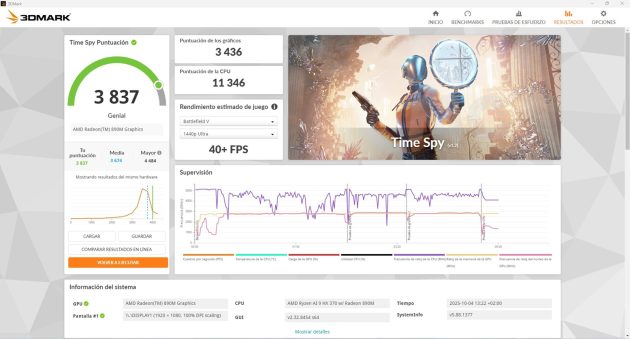 - La Radeon 8060s es la más potente de las tres con sus 10.038 puntos.