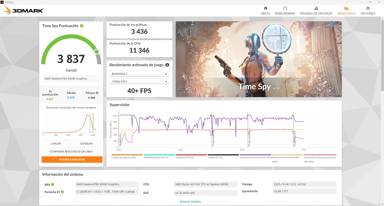 - La Radeon 890M consigue una puntuación 3.436.