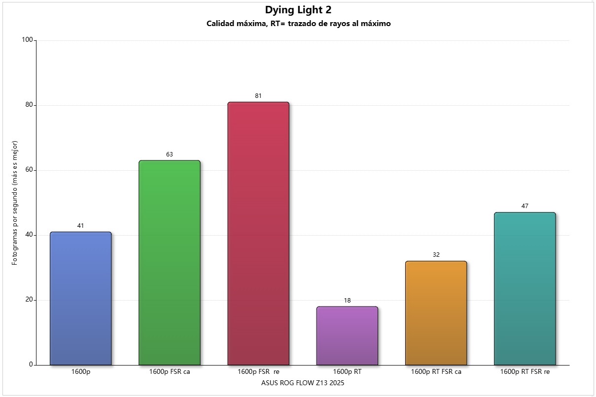 - Dying Light 2: calidad alta-media, FSR calidad: 37 FPS.