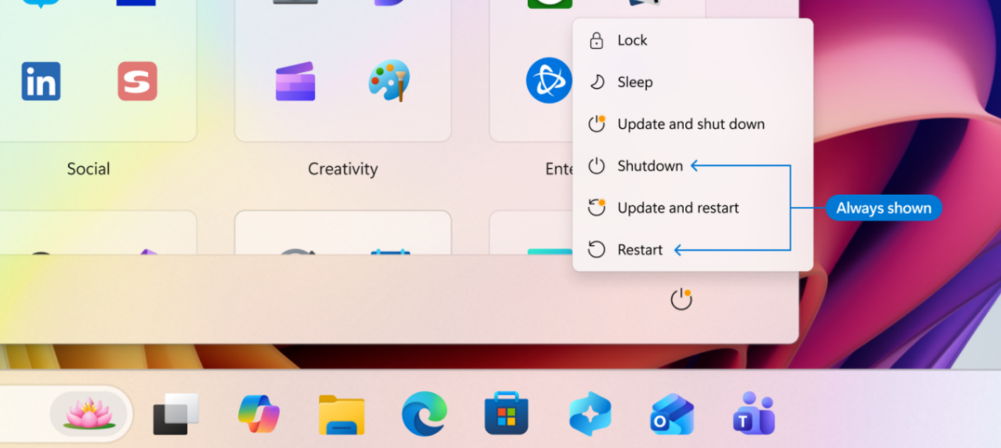 Otro de los cambios pretende garantizar que los usuarios de Windows 11 siempre tengan la opción de apagar o reiniciar sus dispositivos sin actualizar. Windows 11 separará claramente las acciones de encendido de las de actualización. El menú de Encendido mostrará opciones separadas para Reiniciar y Apagar, lo que significa que los usuarios podrán elegir entre reiniciar o apagar su dispositivo sin necesidad de instalar primero la actualización pendiente. Asimismo, si el usuario lo prefiere, estarán disponibles opciones específicas para actualizaciones, como Actualizar y reiniciar, y Actualizar y apagar. Este control contra las actualizaciones que se instalaban en el peor momento, cuando más necesitaban el equipo, también es bienvenido.